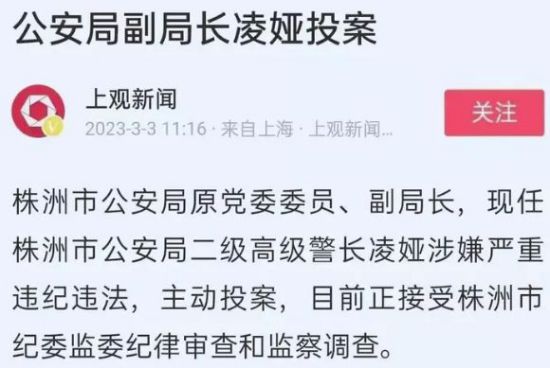 湖南省株洲市,公安局副局长凌娅,主动投案。眼见事发,兜不住了,为了少牵连一点,弄个从轻发落而自首的官员并不少,可这位凌娅副局长,绝对是其中龙凤。