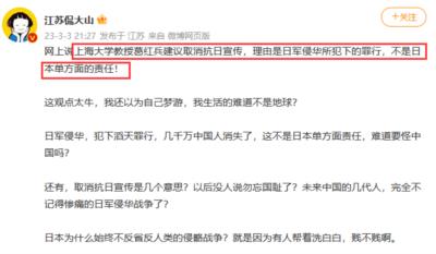 建议中国也取消抗日宣传,无异于把日军侵华的历史从教科书中移除,而这样行为的最终目的,不就和上面日本人的所作所为心心念念的目的完全契合?
