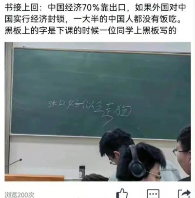 第二,中国人都是靠欧美赏饭吃,现在和美国闹矛盾,这不是想饿肚子吗?
