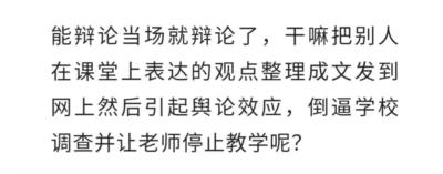 不出意外的是,南航老师陈赛彬被举报后,又有人站出来指责学生们了。还有人说,不应该堵上老师的嘴,应该让老师有说话的自由。