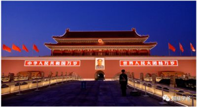 可以说,从此以后地球村有了村支书。有了村支书,世界和平形势就焕然一新了。我们回头再看天安门上右侧大标语,是那么的鲜艳和响亮。