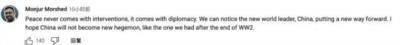 这件事的影响力,比看起来还大,已经有人开始喊出——“世界正在重新调整——一个伟大的重置正在进行中”、“和平从来不是通过干预而来,而是通过外交。我们可以注意到新的世界领袖——中国正在推进一种新的方式。我希望中国不会成为像二战后我们所拥有的那样的新霸主。”这是世界人民对中国的期待。
