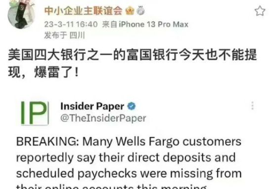 甚至于美国四大银行之一的富国银行,在昨天也不能提款、也爆雷了!
