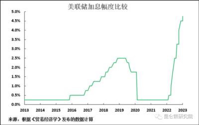 如图2所示,为抑制美国经济政策引发的通胀浪潮,美联储开始迅速提高利率。美国利率从2022年2月的0.25%升至2023年2月4.75%,仅一年就增长了4.5%。
