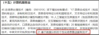 在这个更新后的技术目录里,把“基于数据分析的个性化信息推送服务技术”列入了限制出口名单里。