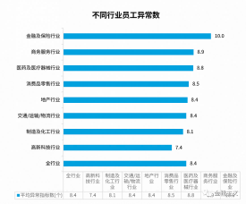在检测结果上,全行业人均体检指标异常数为8.4个。金融及保险行业员工人均异常指标数最高,达10.0个;高新科技行业人均异常指标数最低,为7.4个。