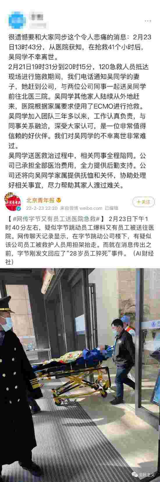 去年字节跳动的人命案发生时,已经是当月国内引发关注的第三起年轻员工过劳猝死的新闻了。