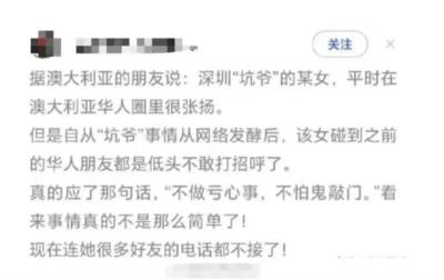 这位网友的朋友在澳大利亚,认识钟小姐,她说: