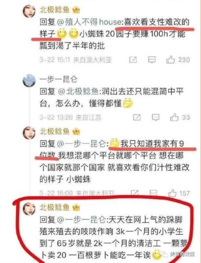 在国内捞钱,在西方享受。甚至更过分一点,吃饭砸锅,沾着中国红利,还要各种搞破坏,放嘲讽。比如号称9位数的高官之后,润到澳大利亚的“北极鲶鱼”