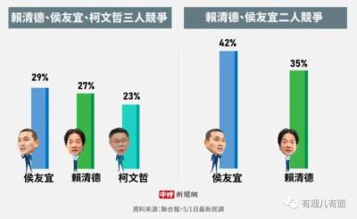 大有侯友宜、柯文哲夹攻民进党方面的赖清德之势。