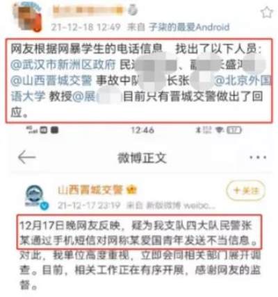 好在这位也是个硬骨头,把这些人肉辱骂他的电话都公布在网上,结果不乏一些吃公家饭的。最终也只有晋城交警处理了非法人肉骚扰的人,其他全都不了了之。