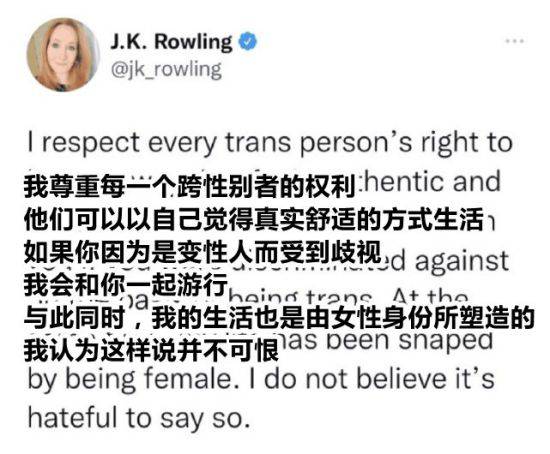 变性女人就是女人,这一点上,我坚决与变性人站在一起,希望罗琳的言论不要对她们造成伤害。