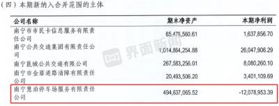 离谱的是,南宁轨道交通集团财报显示,2022年,慧泊停车净资产约为4.95亿元,净利润亏损约1208万元!