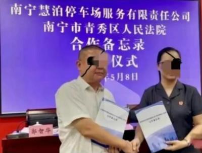 更过分的是南宁慧泊公司竟然还与当地青秀区法院签署备忘协议,让法院充当一个企业的催债人,动用公权力和种种技术手段追缴停车费欠款。