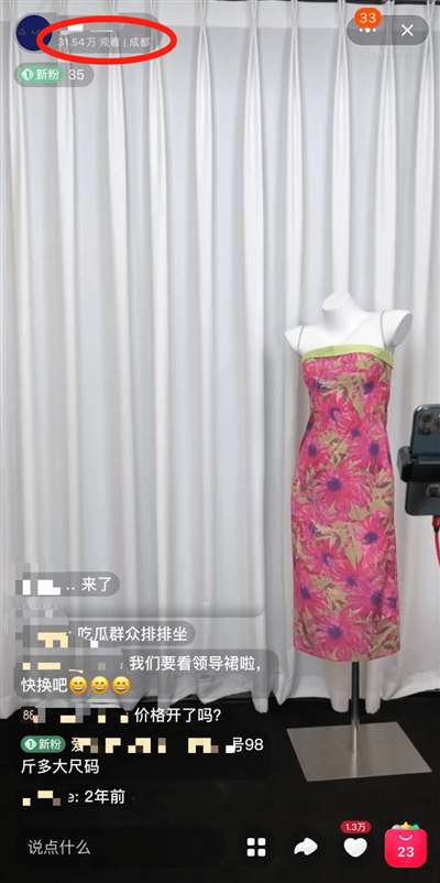 6月7日晚,成都太古里“牵手逛街门”中女主穿的粉红吊带裙,冲上了热搜。在某电商平台上,这条原创设计的裙子的店铺月销量,一夜之间突破4000+。售卖该裙子的店铺也顺势开启了直播,直播间挂着这款“引流裙”,两位主播在边上试穿不同款式的衣服,和网友火热互动。短短几个小时,直播间人数冲到30多万。目前,该账号拥有粉丝16万。