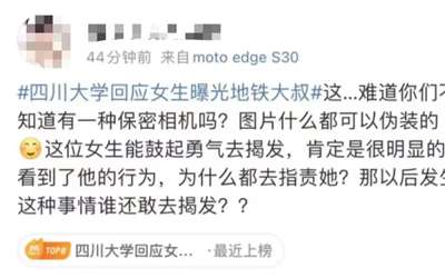 6月7日,四川大学新闻学院一女硕士坐地铁,看到一位大叔蹲着玩手机,指责人家偷拍。大叔当即把手机交给她检查,啥也没有。显然,这是一场误会。