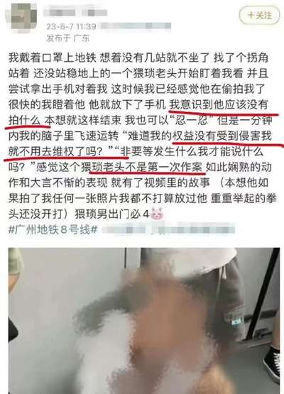 我意识到他应该没有拍什么,本想就这样结束。我也可以“忍一忍”,但是一分钟内我的脑子里飞速运转“难道我的权益没有受到侵害,我就不用去维权了吗?”“非要等发生什么我才能说什么吗?”