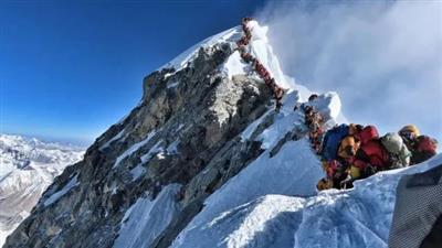 2019年5月底,大约有700名登山者和他们的向导堵在了8000多米的珠峰,这场拥堵持续了3个多小时, “80度斜坡,仅仅能容纳两只脚,旁边就是悬崖”。用一位美国登山者的话说,“珠峰简直成了动物园”。