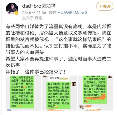 面对网上越来越多对刘女士的指责,谢如祥呼吁事情到此为止,不要给当事人造成二次伤害。
