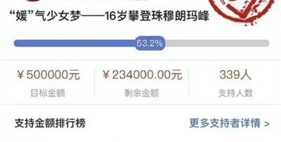 这并不是重点,关键是3月份的时候,女孩父亲曾经在朋友圈进行众筹50万,帮助女儿登顶珠峰,并最终筹集到资金266000元。此外,当地一家药企也赞助了30万元登山资金。
