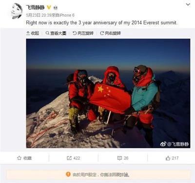2014年,中国登山爱好者王静成功登顶珠峰,3年后,她还发微博纪念了自己登顶3周年。只不过,当初她登顶的时候就引起了不小的争议,因为她当时是直接乘坐直升机,从海拔5364米的尼泊尔珠峰大本营飞到6400米二号营地,然后才开始攀登。