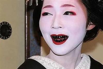 你受不了欧洲束腰、中国裹小脚的审美?那是没见过日本的,剃眉、染黑齿,惨白的脸,超恐怖!