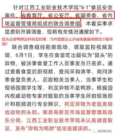 谁能想到,为了分辨一个鼠头是不是“鸭脖”,竟然需要省部级的重量级调查组,折腾两个多星期才能定论,实在是有些滑稽。