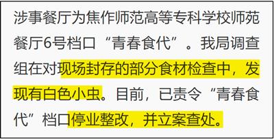 就像焦作这高校的烤鱼里发现蛆在扭动,鱼里面哪来的蛆?关键还是活蛆。这避开了“没洗干净”的问题,更带出了“食材变质”的情况。所以不叫“失误”,而是商人为了自身利益,舍弃顾客健康的主观行为。