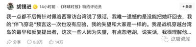 正是胡锡进的煽动,导致爱国群众情绪出现极大落差,对佩洛西专机成功降落深感不满。