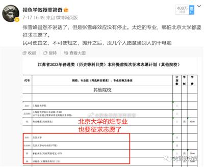 张雪峰因为称“别报新闻,你闭着眼睛摸一个专业都比新闻好”,引发新闻学教授的口水战。虽然最终“小网红”称病住院高挂免战牌,但新闻传播专业的录取分数却是实实在在的被打崩了