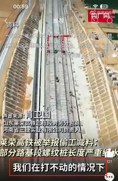 日前,因巨大矛盾撕破了脸,三捷公司实名举报中建八局在莱荣高铁的建设过程中存在大量对桩基础偷工减料的现象,并且提交了足够多的实锤证据,大量媒体跟进报道,引发了全国人民的震惊。