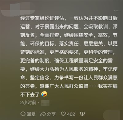 上图这种腔调非常流行,而麻烦最大的是,上图说的这番话基本就是未来的现实,调查组最后的结论应该就是不影响日后运营,到时候绝对是舆论风暴,各种阴阳怪气的讽刺。