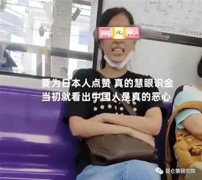 事情的起因是一个女人莫名其妙地在地铁上大声发表辱华言论:“真的要为日本人点赞,怎么那么慧眼识金,一眼看出中国人就是恶心”“真是畜生一样的国家”“爱国志士,我CNMB”……