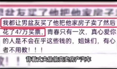 有个女生为亲眼目睹三个戏子的演唱会,提出让男朋友给自己买票,男朋友因为刚出校门不久,没什么积蓄,她就让男朋友把他家的房子卖了,拿47万买了一张门票。