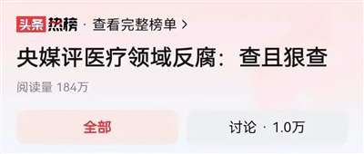 这段时间医疗系统反腐强劲,一些医疗系统官员落马,百姓叫好,大快人心。