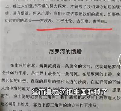 虽然个别网友投诉“将中国踢出四大文明古国”的说法,出版社可以用“文字游戏”糊弄过去,但是我前文的分析,已经将编辑策划们“中华与世界割裂”,“抬高欧美文明起源地位”的立场揭示的非常清晰了。