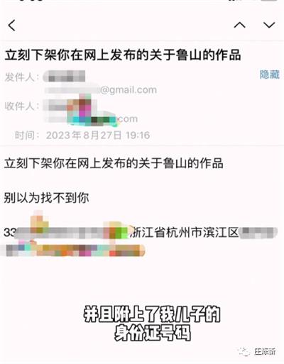 8月31日极目新闻爆料:浙江杭州知名导游“小黑诸鸣”对河南鲁山县“天价雕塑”事件发表评论后,收到一封附有他家庭住址及孩子身份证号的威胁邮件。8月31日,“小黑诸鸣”告诉极目新闻记者,鲁山县政府工作人员向他表示,发邮件者肯定不是政府的人员,当地公安部门已介入。目前他也已向杭州当地派出所报警。