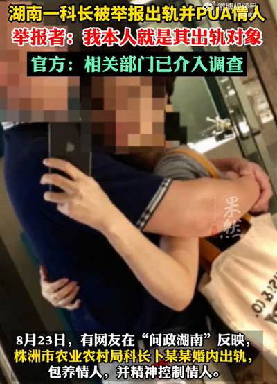 8月23日,有网友在“问政湖南”平台反映,称株洲市农村局科长卜某某婚内出轨、包养情人并PUA情人,最后其声称自己就是卜某某的通奸对象。