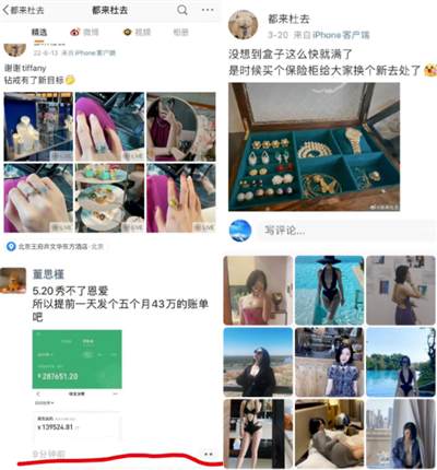 涉事女主此前曾自己在社交媒体上高调晒出炫富以及暴露着装的内容:
