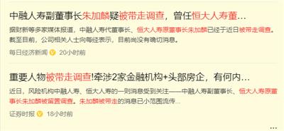 就在本周,多家媒体突传,中融人寿代董事长、原恒大人寿董事长朱加麟被带走调查,目前已经处于失联状态。