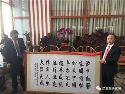 我的老眼昏花,字儿太小,这是什么人送的?这是谁的字?这个字挂在什么地方?什么时间送的?是许老板本人的自我人设还是拍马屁的,或者有求于许老板的高誉高抬?