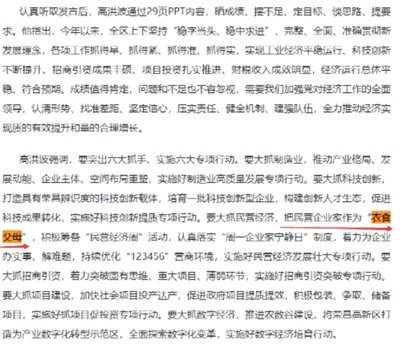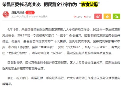 (重庆市荣昌区委书记)高洪波强调,......要大抓民营经济,把民营企业家作为“衣食父母”......