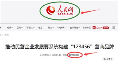 《重庆日报》报道《推动民营企业发展要系统构建“123456”营商品牌》(作者:荣昌区委书记高洪波):
