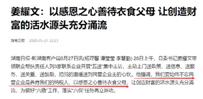 《湖南日报》报道《姜耀文:以感恩之心善待衣食父母 让创造财富的活水源头充分涌流》: