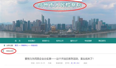 杭州市人民检察院官网报道《要努力为民营企业办实事——这个开放日系列活动,重头戏来了!》: