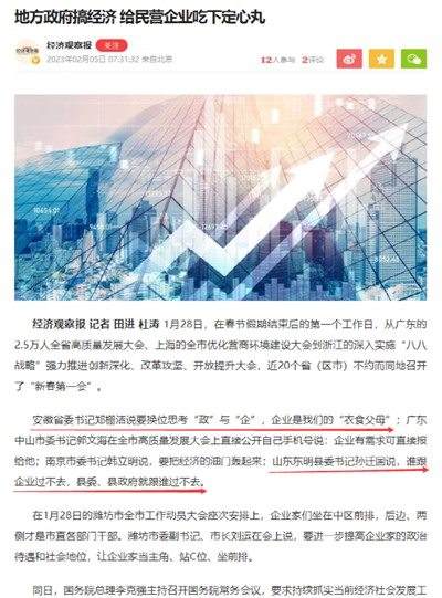 经济观察报报道《地方政府搞经济 给民营企业吃下定心丸》: