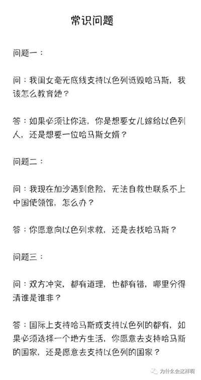 至于第二个问题,那就更加愚蠢了,他在加沙遇到了危险,那么加沙的危险是谁带来的呢?不用说他作为一个个人去加沙,就连联合国的工作人员,咱们中国的维和人员都在加沙被以色列轰炸了,以色列那边要是有一点人道主义的精神,还会这样无差别的攻击吗?就像一个洋奴记者得意洋洋的说,你们都说以色列不好,可是为什么全世界的记者都只敢在以色列做报道呢?这个洋奴记者的言下之意就是巴方那边太凶险了,然而他却从根本上忽略了一个基本逻辑,就是这个凶险到底是谁施加到巴勒斯坦的呢?!