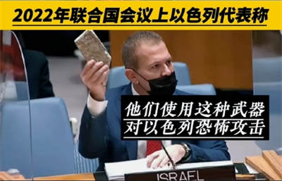 别笑,是真事,2022年的时候以色列代表真是这么说的,甚至还当众给各国代表展示了巴勒斯坦发动恐怖袭击的凶器。