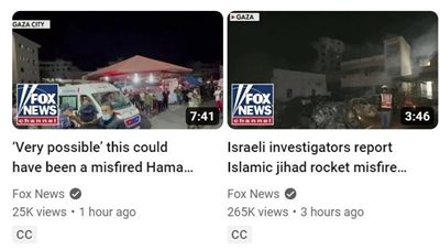 我第一时间查看了FOX的油管频道,美国极右翼已经帮以色列极右翼发出两条视频了,咬死了是哈马斯自己炸的。