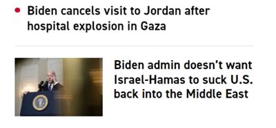 再去看民主党那边的CNN,没有动静,好像世界和平无事发生。事实上从昨天开始,民主党喉舌不管是CNN还是POLITICO,都好像加大了对“共和党内斗、众议院新议长选举混乱”的报道篇幅,在本来就淡化的基础上更加淡化了对巴以冲突的报道。